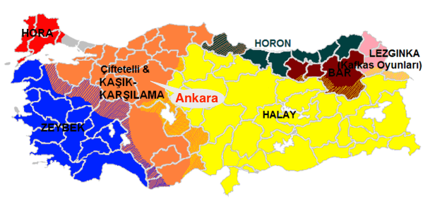 Turks divide their country into a few dance regions, named after the predominant dance in the region. Ankara lies within the Çiftetelli & Kaşik-Karşılama region.