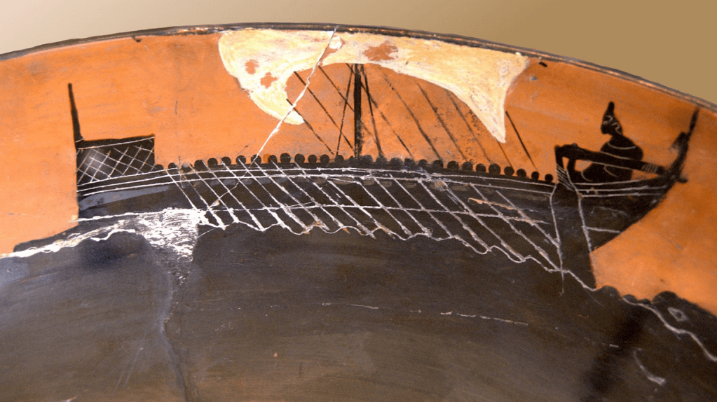 Pontus was a primordial, pre-olympian Greek god, son of Gaia (no father). Wikipedia says “For Hesiod, Pontus seems little more than a personification of the sea, ho pontos, “the Road”, by which Hellenes signified the Mediterranean Sea.[4]“ About 3000 years ago Greeks began exploring what we now call the Black Sea, which they named Πόντος Εὔξεινος Pontos Euxeinos (“Hospitable Sea”[2]). Their craft were essentially big rowboats with a sail to [sometimes] assist. Greeks were by no means the first peoples to live around the Black Sea coast, but they were the first to write about their travels.