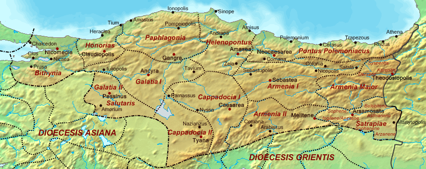 Which evolved into the Byzantine (Greek) Empire. Below is the Diocese of Pontus, further subdivided into provinces, ca 400 AD.