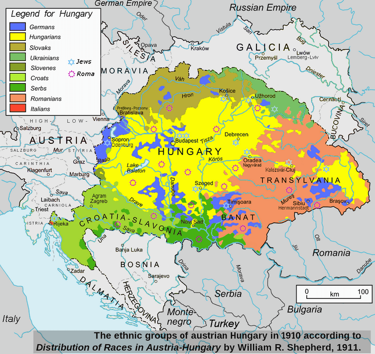 Hungarians ruled Transylvania from the time they arrived, about 1000, to 1920 (except for a brief occupation by the Ottomans). However they were not the only ethnic group in the area. Romanians were the vast majority, arriving- more than a thousand years before the Hungarians. Jews were there when Transylvania was called Dacia, a colony of the Roman Empire, around AD 100. There were also a significant number of Saxon Germans, invited by the Hungarians beginning around 1100. The earliest record of Roma in Transylvania dates from around 1400, when they appear among a list of slaves in Făgăraş.