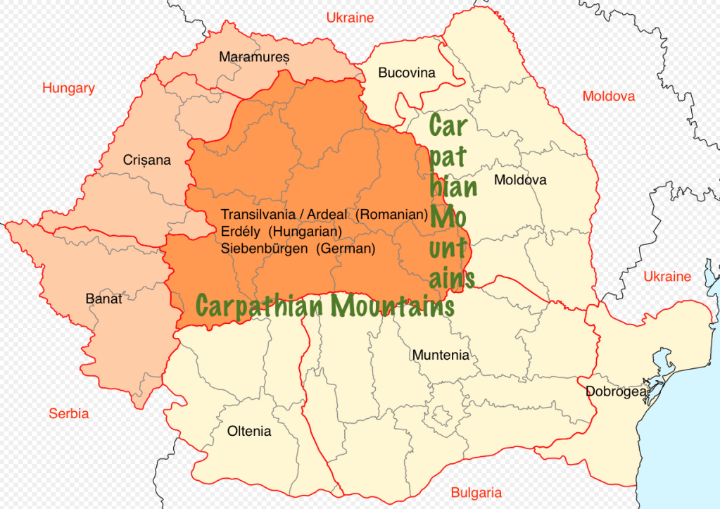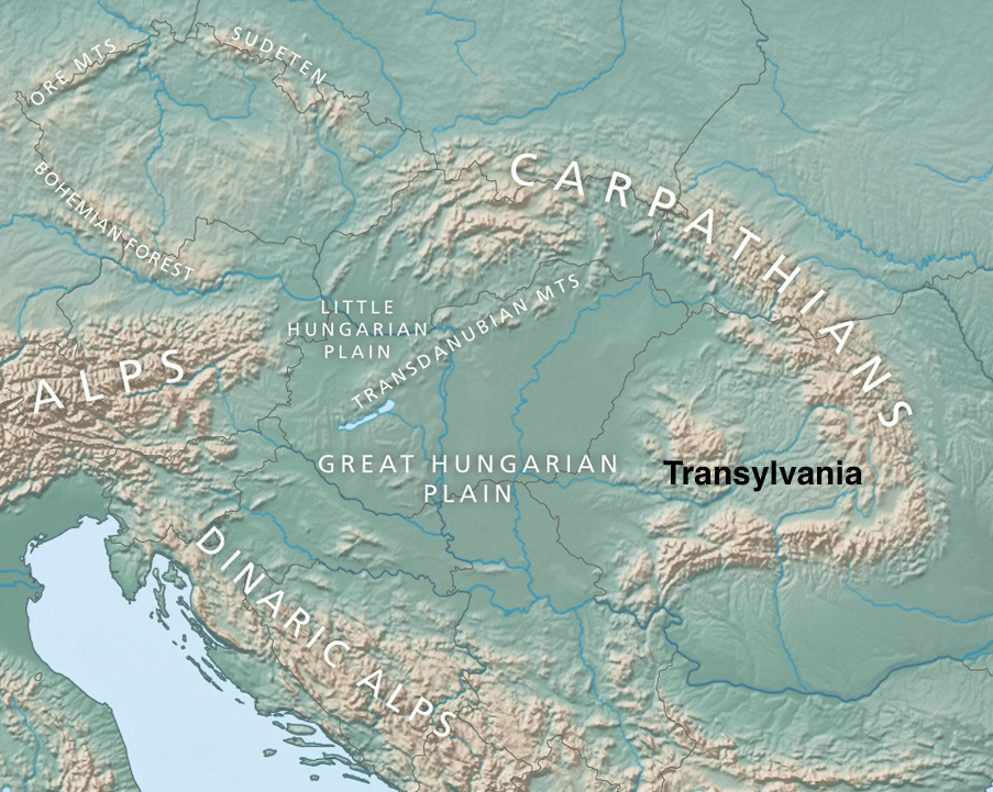 The word combination trans-sylvania is a Latin term for “across (on the other side of) the woods”. That begs the question “other side for whom?” In this case, for the Hungarians. Their adopted homeland (after invading from the Eurasian steppes) is a vast prairie, which they call the Alföld, though most English, Slavic, and Germanic-speaking people call it Pannonia or the Carpathian Basin or the Great Hungarian Plain. Hungary’s eastern flank was covered with forests, rising to imposing mountains (the Carpathians) to the east, north, and south. Hungarians call this forested region Erdély, which translate as “forest region”. However when Hungarians converted to Catholicism, Latin-speaking clergy began keeping written records. Thus the Latin-based word Transylvania became well-established in Western literature before the Hungarian Erdély.