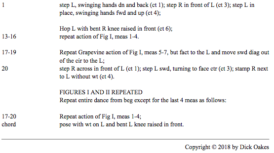 Its rhythm tells us the choreography for Cimpoi is in the rustem family of dances, but was it ever a ‘village’ dance? Mihai David, who introduced Cimpoi to North Americans, said he learned it while dancing with the Romanian State Folk Dance Ensemble, (1963-1965). Their job was to produce folk-based spectacles glorifying Romania for the theatre-going market at home and abroad. Authenticity was researched, then moulded to serve the needs of spectacle and propaganda. Often choreographies were created to correspond with stirring orchestral arrangements. That seeems to be the case here, as the footwork matches the music exactly. The exciting music and choreography are what makes Cimpoi such fun for recreational folk dancers, but only one recording is suitable.