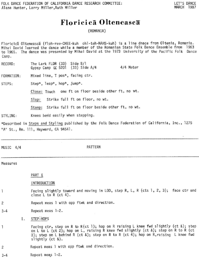 Dance notes below found here: http://www.folkdance.com/LDNotations/FloricicaOlteneasca1987LD.pdf