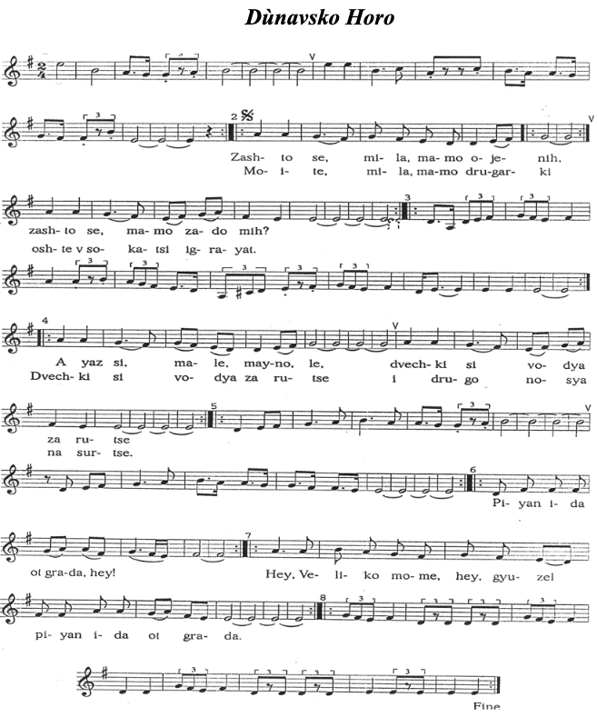 Dunavsko refers to a pravo-based 4-, 6-, or 8-bar* dance originating in towns along the Danube River in but now known throughout Bulgaria..