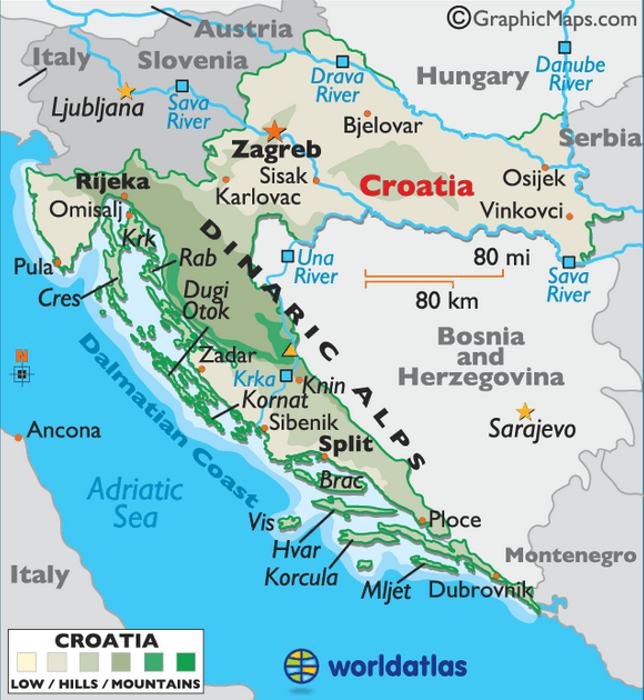 Croatia is a very diverse country geographically. The Adriatic coast, known as Dalmatia (yes, the Dalmatian dog is from there), is a land of sunny, dry islands (backed by steep mountains) with an Italian flavour, having been ruled for centuries from Venice. Croatia’s northern inland is a fertile plain, Slavonia, ruled for centuries and strongly influenced by Hungary (in fact, it WAS Hungary until 1918).