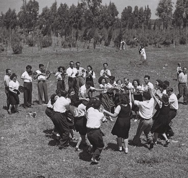 Kibbutzes varied greatly in their degree of social experimentation and their success, but many were extremely egalitarian in their philosophy – feminism was high on the agenda and often successfully implemented, at least superficially. Dance was an important feature of kibbutz life – meetings often started with dancing, and it was determined that new dances were to be a reflection of the new communal philosophy. Thus the circle, that most egalitarian of formations, became the standard for Israeli dance, and many, possibly most dances were deliberately non-partner. Dances reflected current ideas in the European and American dance scenes – Isadora Duncan to Martha Graham – free, vigorous, expressive movement, which expanded the range of what could be considered ‘folk’ moves.