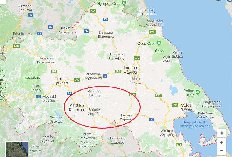 The following quotes are from the best book available on Greek dances – Traditional Dance in Greek Culture by Yvonne Hunt, 1996. “The fertile central plains of Greece are known as the region of Thessaly. It is surrounded by several mountain ranges dividing it from Epiros, Macedonia, and Roumeli, and is bounded by the Aegean Sea on the east, with its busy port of Volos. The mountain peaks and monasteries of Meteora are among its most notable sites.