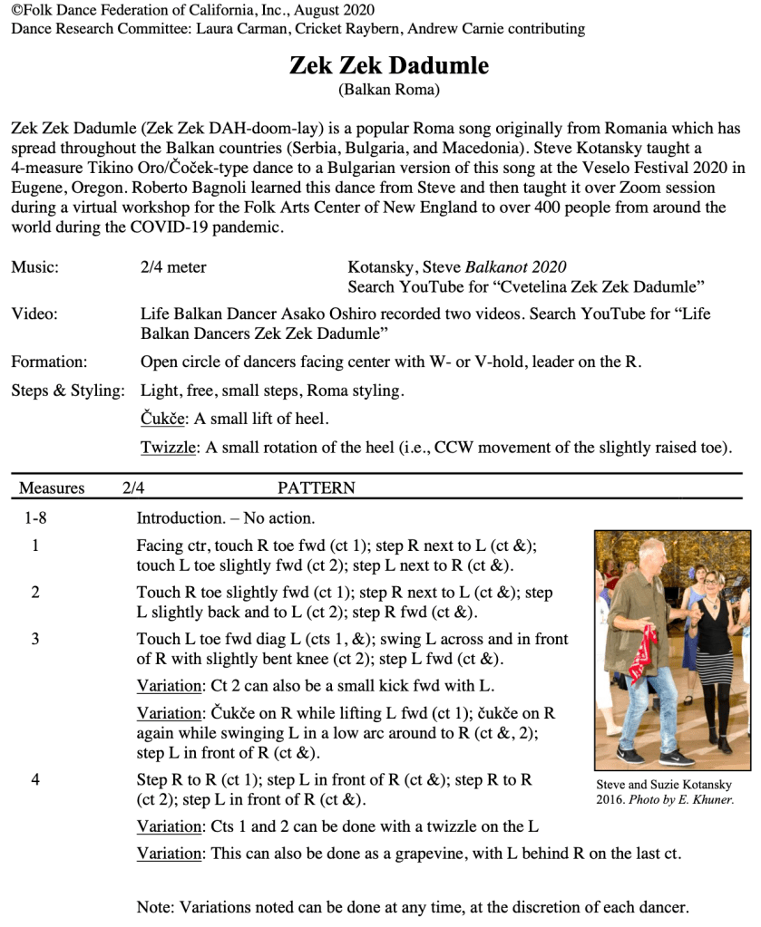 According to the notes below, Steve Kotansky applied Čoček steps to the popular Romanian Roma song, then Roberto Bagnoli spread the dance.