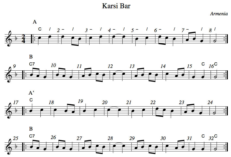 Karsi Bar – Sheet Music https://www.youtube.com/watch?v=mhctHLt4xK0 For an old recording of the music, see: http:// https://archive.org/details/TrioCaucasianneYesBoojoorCa1946 Share this: Click to share on X (Opens in new window) X Click to share on Facebook (Opens in new window) Facebook Like Loading...