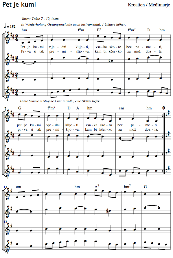 Pet je kumi – Sheet music For background to the song and dance, click here For more lyrics and YouTube versions of the song, click here. Can be downloaded here: http://www.folkloretanznoten.de/PetJeKumi.pdf Share this: Click to share on X (Opens in new window) X Click to share on Facebook (Opens in new window) Facebook Like Loading...